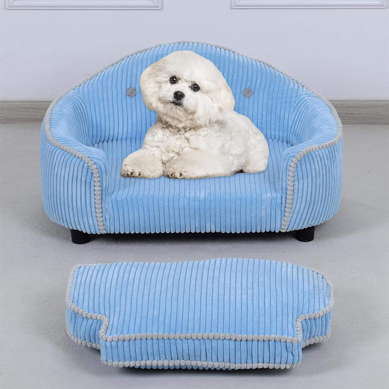 This pet sofa is specially designed for cats and dogs, combining a durable wooden frame with soft velvet cushions to provide a comfortable resting space for your pets. The cushions are filled with high-density foam, offering soft support with resilience. The removable design facilitates easy cleaning and maintenance, keeping the sofa fresh and clean for years. The solid pattern offers a simple yet elegant aesthetic, complementing various home decor styles. Its overall design blends playful charm with a touch of luxury, serving as both a cozy pet retreat and a stylish home accent.