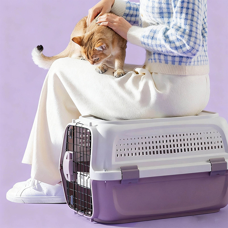 This pet safety carrier is a high-quality airline-approved cage designed specifically for cats and small pets, combining safety, comfort, and convenience. The body is made of premium polypropylene (PP) material, ensuring sturdiness, durability, and lightweight portability for easy carrying and handling.