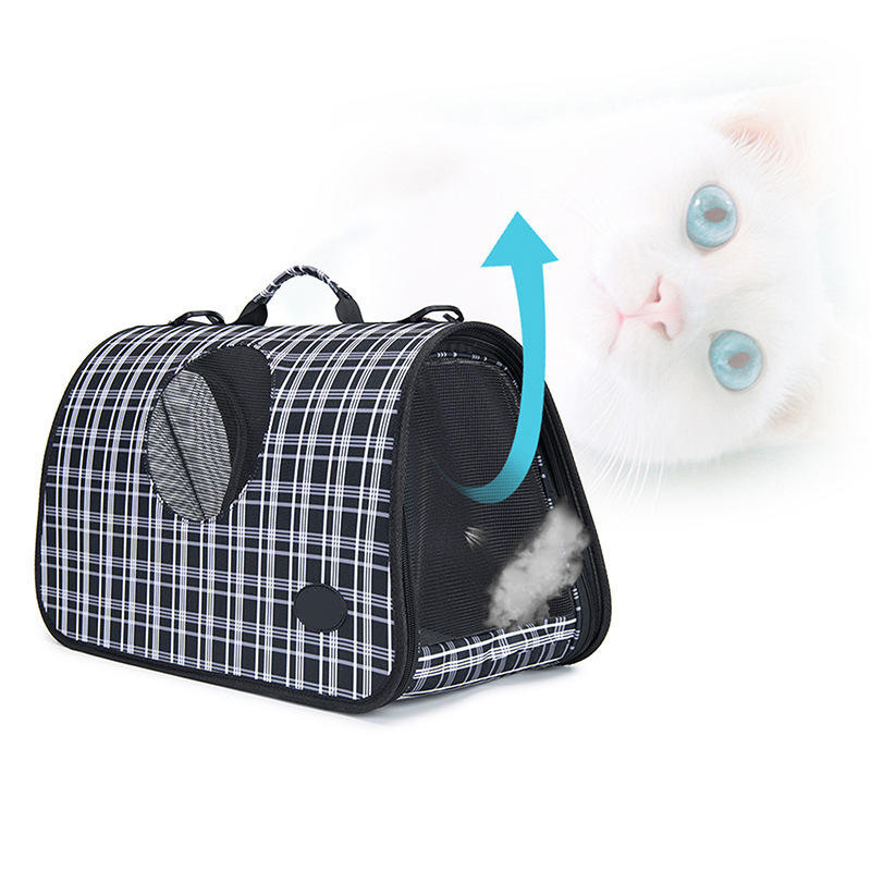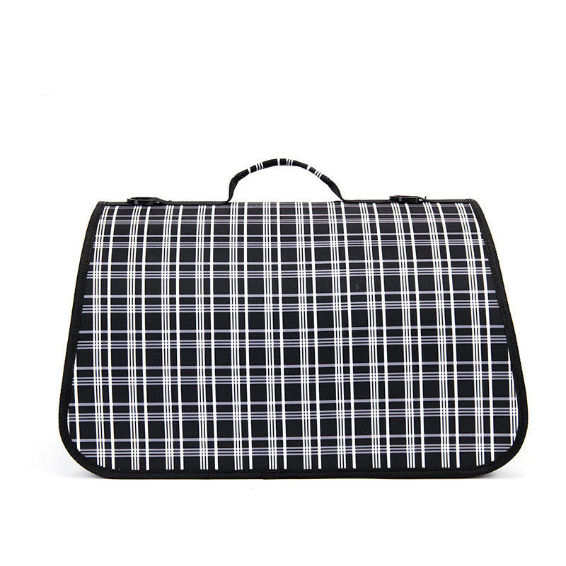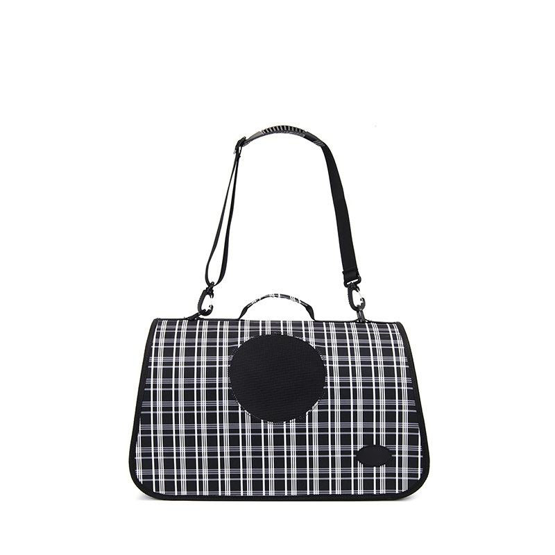 The breathable construction ensures air circulation, keeping your pet comfortable inside and preventing stuffiness or discomfort. The spacious interior easily accommodates daily essentials like water bottles, treats, or toys, blending practicality with style. Its trendy checkered appearance makes it perfect for outdoor adventures, short trips, and daily outings, ensuring your pet travels both safely and stylishly.