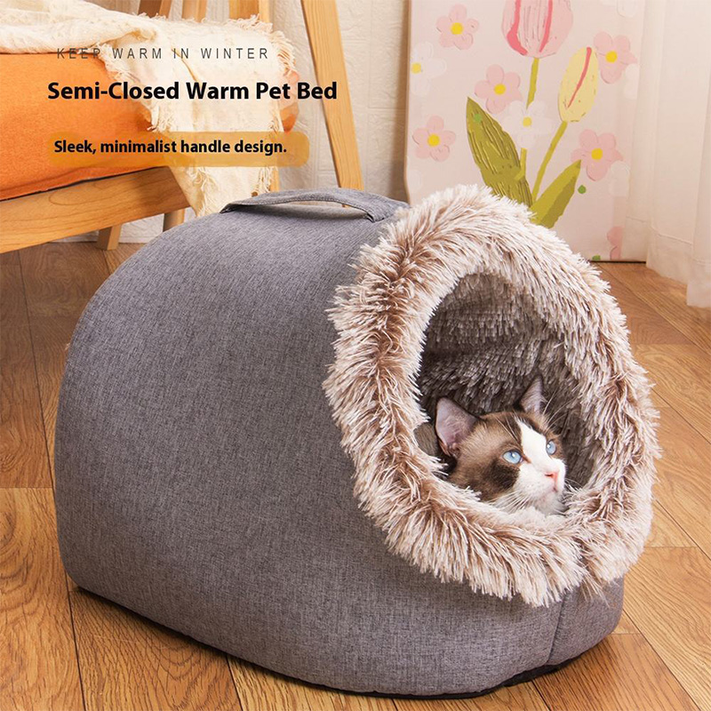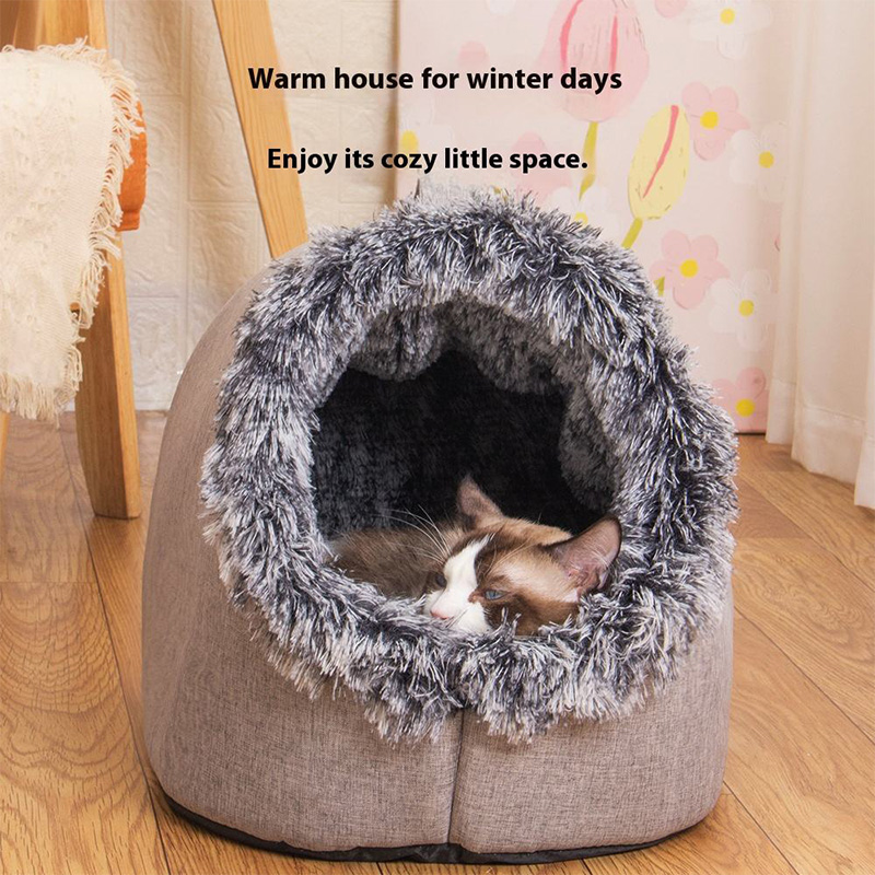 This pet bed is specially designed for cats and small dogs, crafted with high-quality faux fur, velvet, and 100% cotton filling. Its soft and delicate texture combines comfort with eco-friendliness. The semi-enclosed design offers pets a warm, private space while maintaining excellent ventilation, ensuring they feel safe and relaxed during sleep or rest. Lightweight and portable, it's easy to move or take on outings. The thick, soft cotton filling provides excellent support, making it suitable for year-round use.