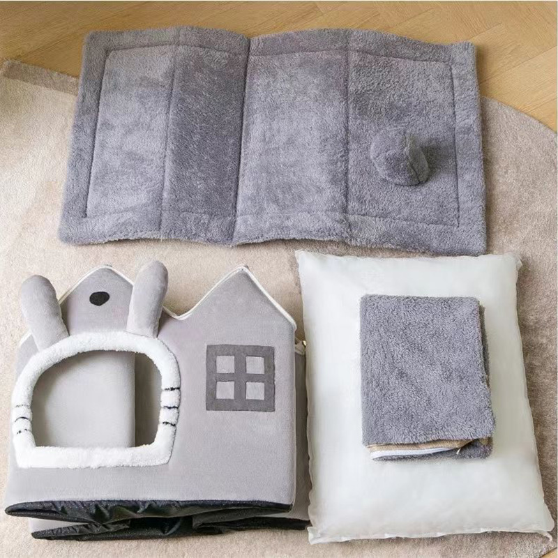 This pet bed features premium eco-friendly cotton material that is soft, comfortable, skin-friendly, and breathable, providing your pet with a warm and secure resting space. Its unique cartoon-themed design adds fun while doubling as home decor. Pets can relax or nap freely inside the bed, with its semi-enclosed structure keeping them warm during colder seasons while offering a sense of privacy and security. The machine-washable design simplifies daily cleaning and maintenance, ensuring the dog bed stays clean and tidy.