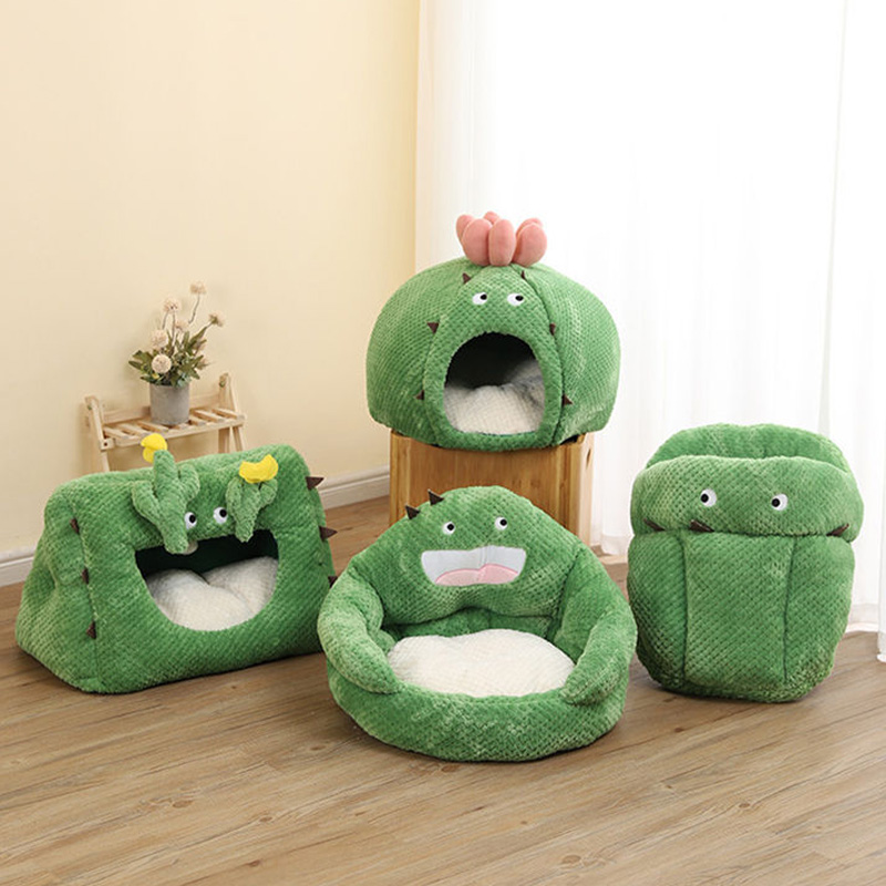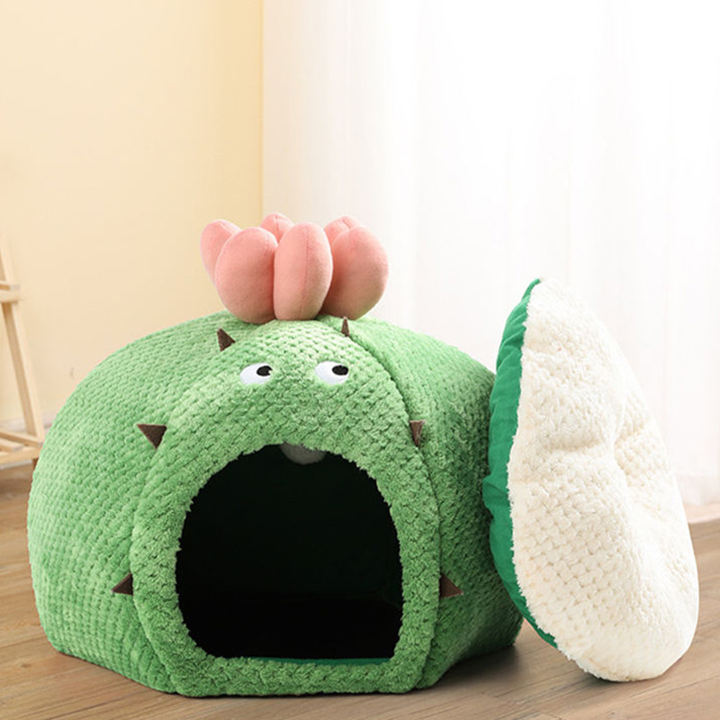 This pet bed features soft pure cotton fabric with a smooth, comfortable texture that's safe and non-irritating, designed specifically for cats and small dogs. Its unique cactus shape is not only adorable and playful but also provides a cozy resting spot, offering pets a sense of security and relaxation in a semi-enclosed environment. The 100% cotton filling ensures breathability while softly supporting your pet's body, making it perfect for all-day lounging and napping.