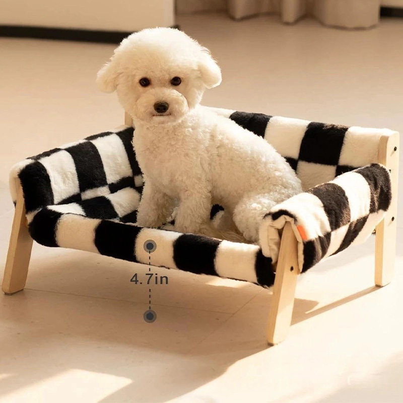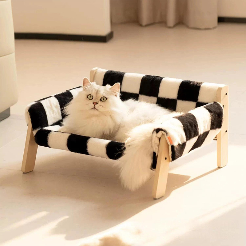 This pet sofa is meticulously crafted from high-quality wood, ensuring sturdiness and durability while embracing eco-friendly principles to provide pets with a safe and comfortable resting space. The bed features a square, stable design with soft polyester filling inside, offering cats plush support and a cozy feel. The checkered pattern adds a modern touch while complementing various home decor styles. The removable mattress design facilitates easy cleaning and maintenance, ensuring hygiene and extending the bed's lifespan. Cardboard packaging simplifies transportation and storage, making it convenient for both home and industrial settings.