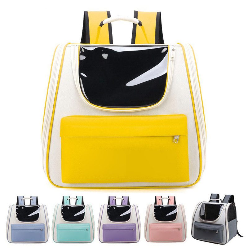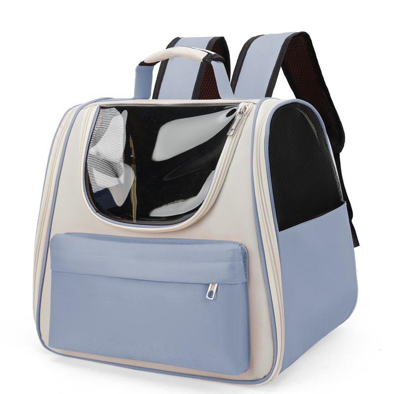 This pet carrier backpack is a high-quality portable carrier designed for small pets, combining eco-friendliness, durability, breathability, and comfort. Crafted from premium PVC and Oxford fabric, it is sturdy, abrasion-resistant, waterproof, and easy to clean while maintaining excellent breathability, providing a comfortable and safe travel environment for your pet.