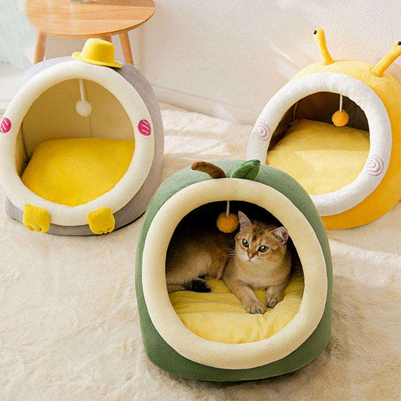 The circular, cocoon-like structure offers both privacy and security while allowing cats and dogs to roll, curl up, or stretch freely inside—making it an ideal year-round resting spot.